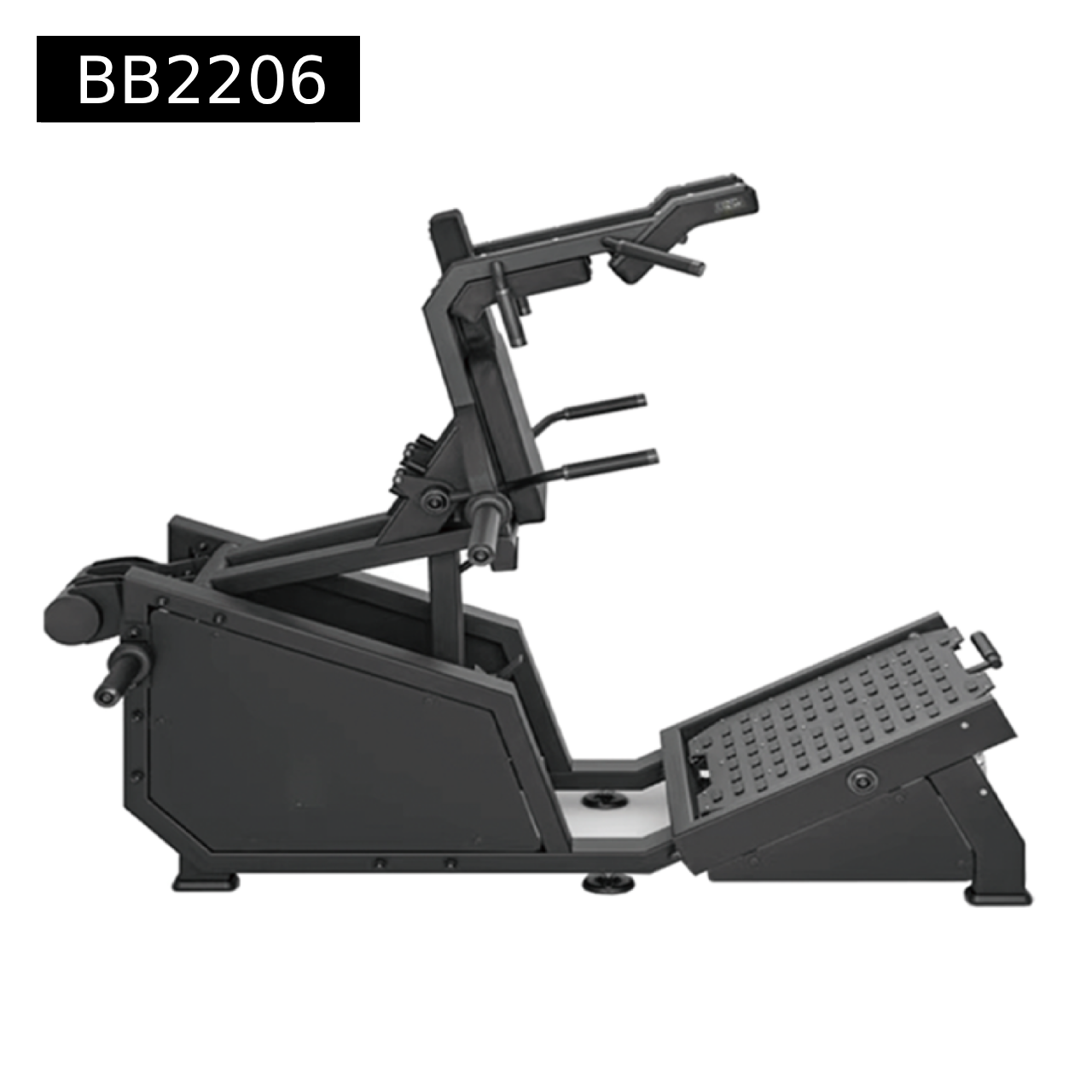 A hack squat machine is a lower-body exercise machine that guides the user through a fixed squatting motion with back and shoulder support. It primarily targets the quadriceps while also engaging the glutes and hamstrings. The supported design allows for deep, controlled squats with reduced strain on the lower back, making it effective for building leg strength, muscle mass, and proper squat mechanics safely.