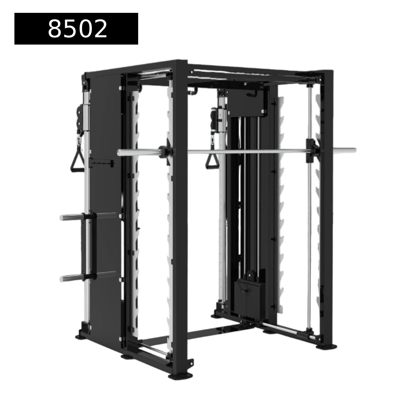 The Smith Functional Combo is a versatile strength training system that integrates a guided Smith machine with multiple functional training stations. Designed for comprehensive workouts, it supports both controlled barbell movement and free-weight exercises, plus added features such as pull-up bars, cable attachments, and adjustable safety bars. Built with a heavy-duty steel frame and customizable components, this all-in-one unit enhances training variety, user safety, and overall performance, making it ideal for commercial gyms and professional fitness facilities.